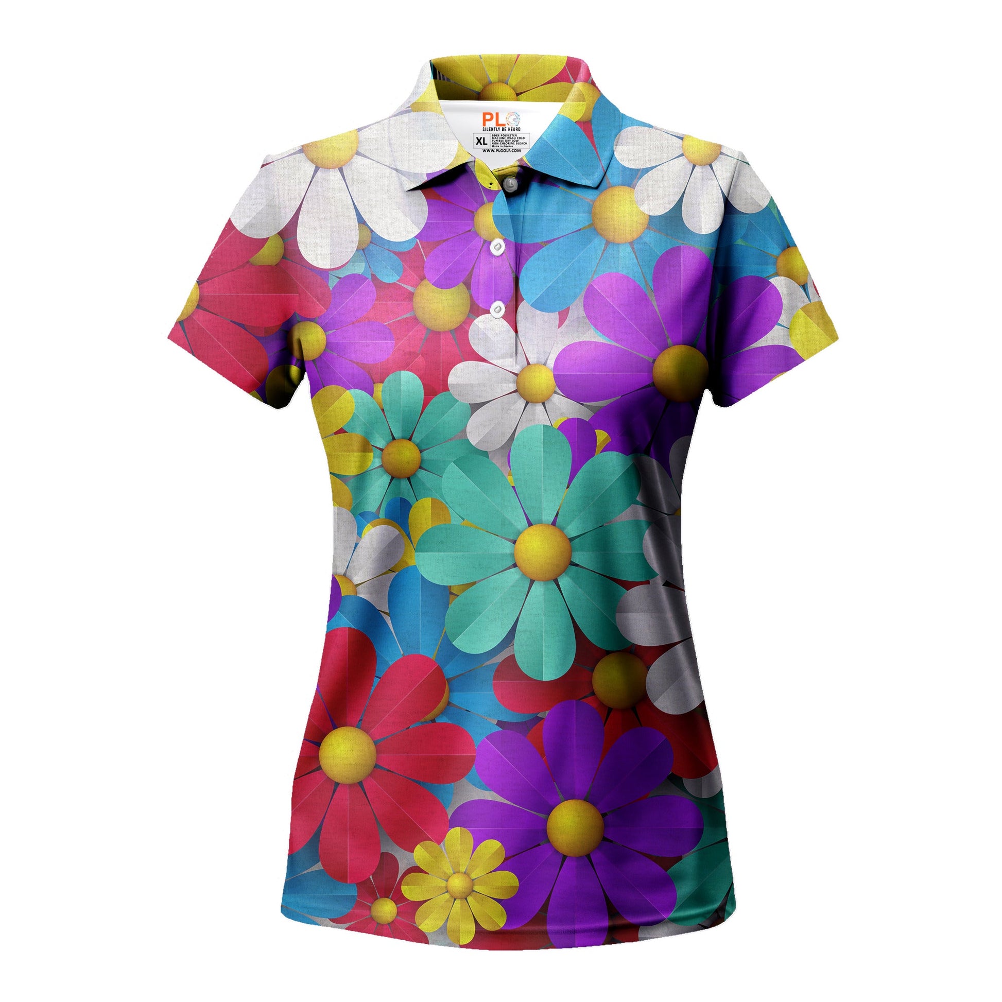 Step onto the green in style in Daisy, designed to offer cool comfort with its breathable, quick-dry polyester fabric. This durable polo boasts a cheerful, multi-colored floral print that stays crisp and anti-wrinkle round after round, ensuring no fading even under the sun's bright gaze.