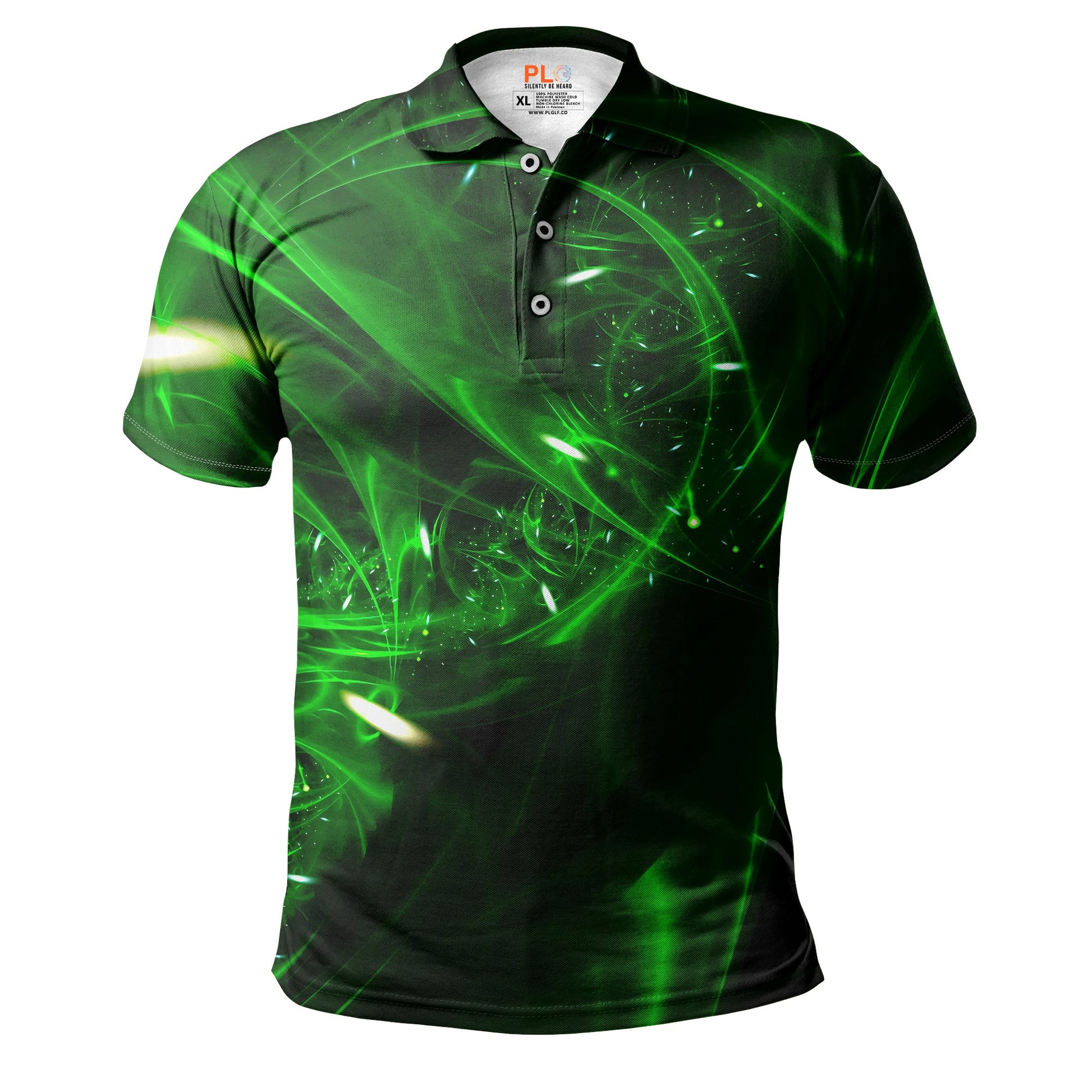 Color: The Emerald polo illuminates with glowing, electric green hues over a dark black base. Its neon-like energy adds a vibrant, bold element to your game, perfect for standing out on the course.