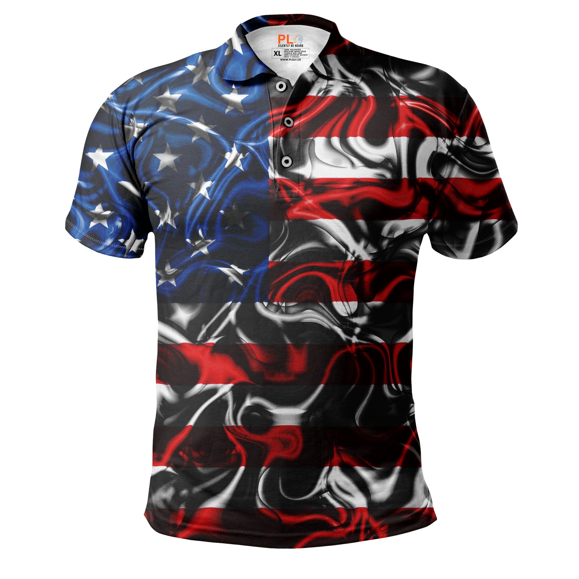 Color: The Hero polo showcases a bold American flag design with rich, swirling red, white, and blue colors. Perfect for golfers who want to play with pride and make a patriotic statement on the course.