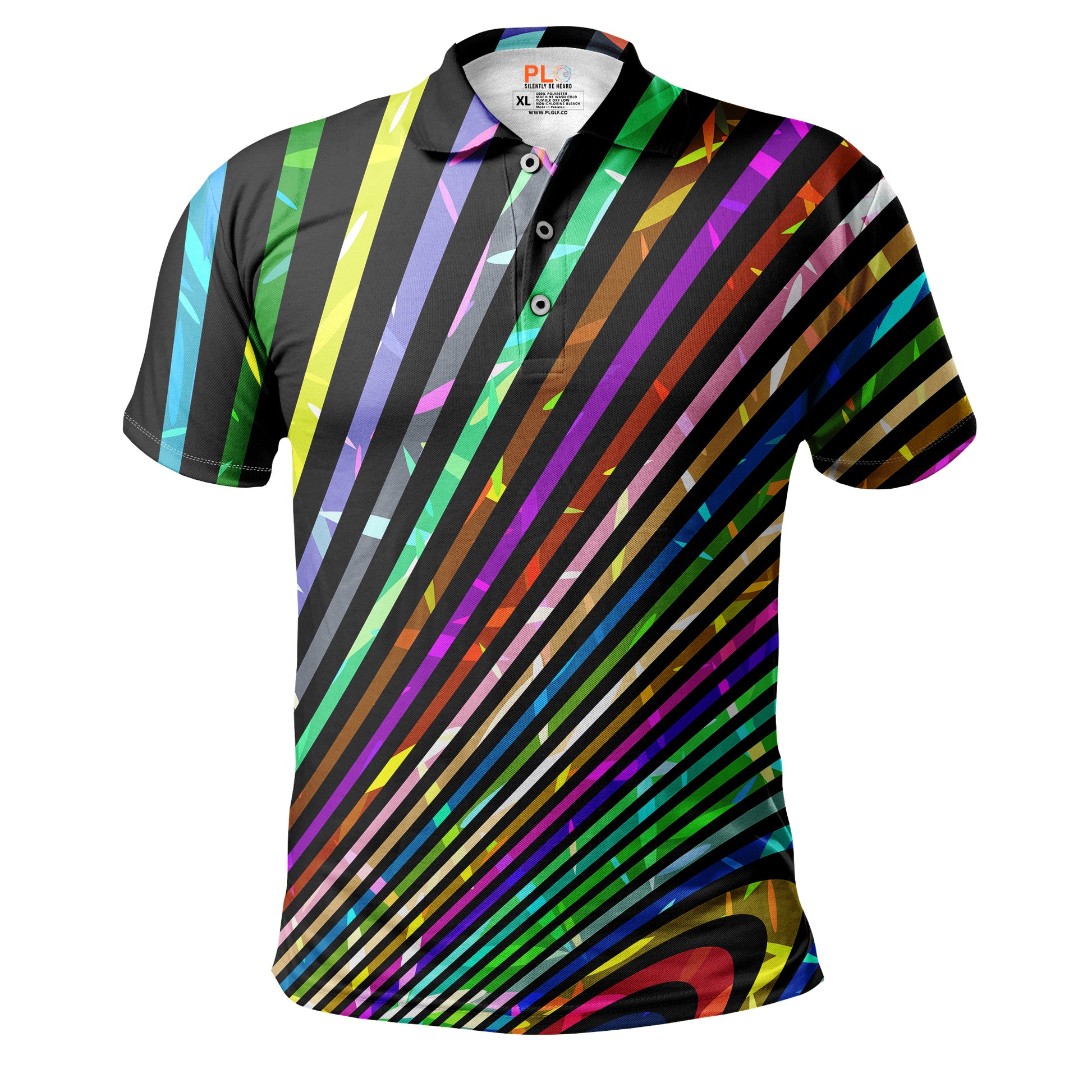 Light up the course. Laser Burst features diagonal beams of neon color cutting through the darkness. The dynamic angle of the rainbow rays suggests upward momentum and power, giving her a look that is energetic, vibrant, and impossible to miss.