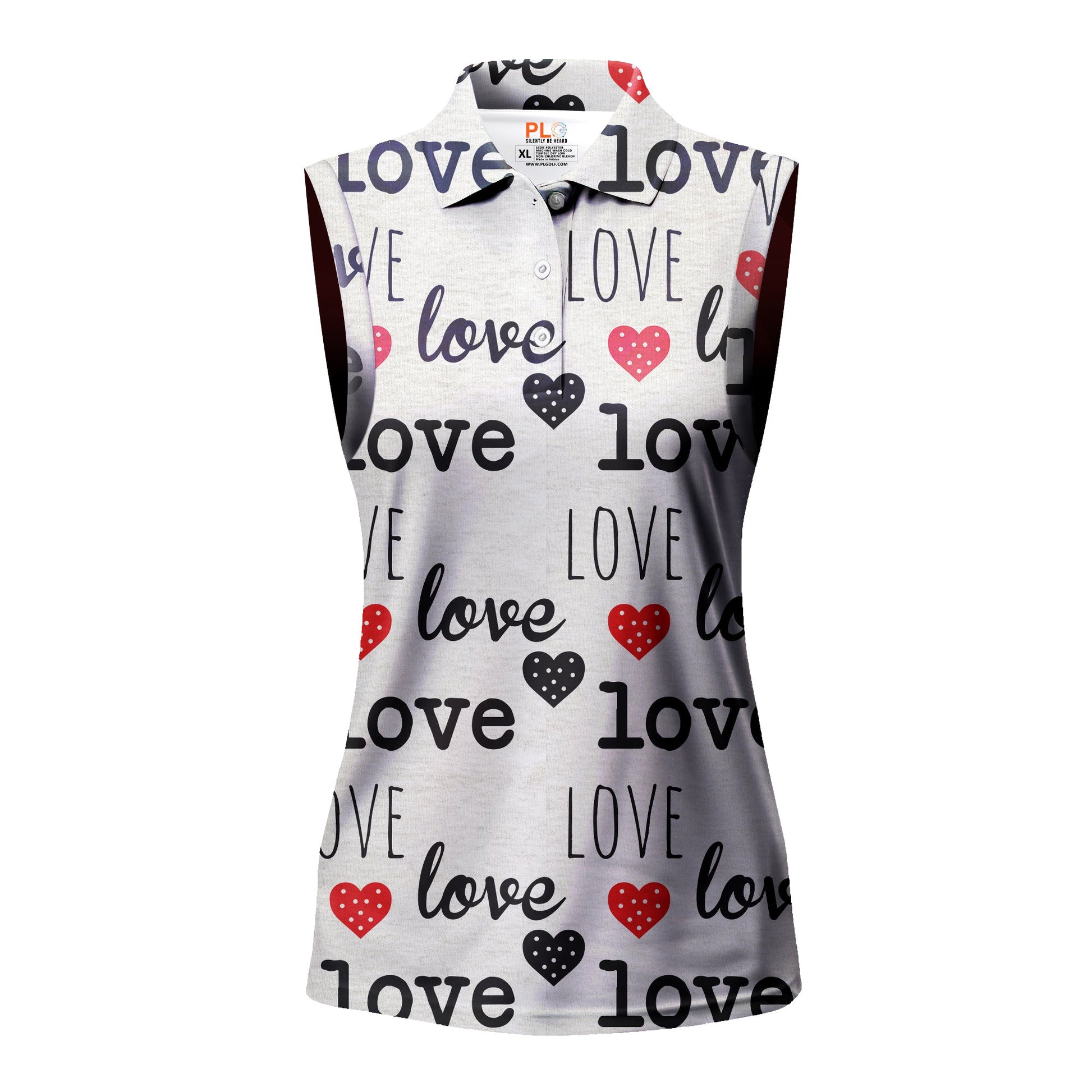 Love Script is a typographic tribute to the lovers of golf, featuring the word "love" in a charming handwritten style, interspersed with polka-dotted and solid hearts in classic red and black. It's a stylish token of affection for the course that speaks to the heart of the game.