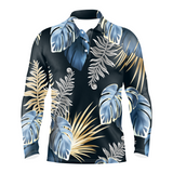 Embrace the spirit of the tropics with Maui, a stylish polo that's your ticket to a casual yet sophisticated vibe. Adorned with a serene pattern of silver and gold-toned palm fronds against a midnight backdrop, this shirt is crafted from a breathable, moisture-wicking fabric designed to keep you cool under the sun. Whether you're hitting the links or the luau, Maui is your go-to for an endless summer feel.