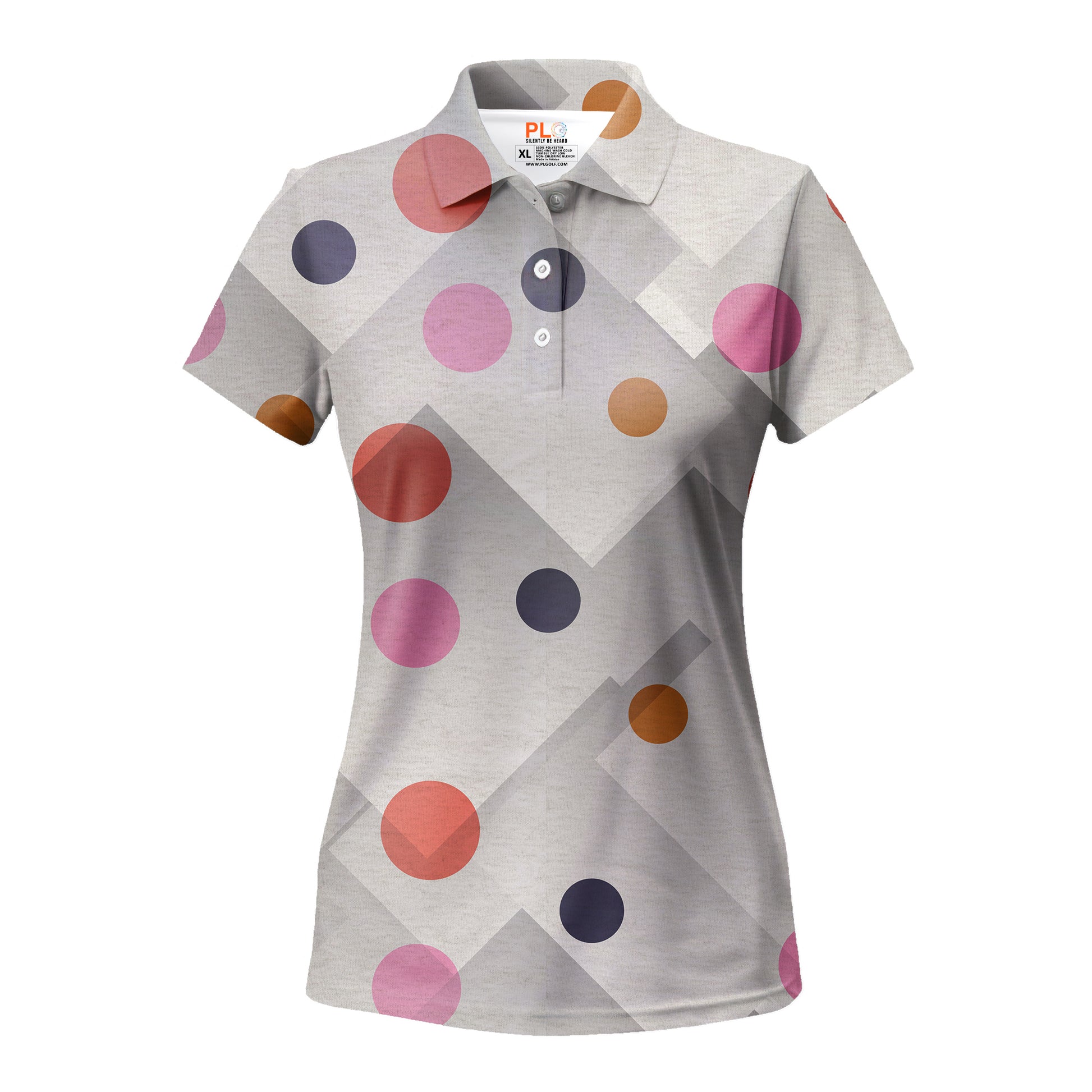 City chic meets fairway fun. Metro Dot overlays playful pink, orange, and black dots on a concrete grey geometric background. It’s a balanced mix of industrial cool and colorful pop, designed for the modern golfer.