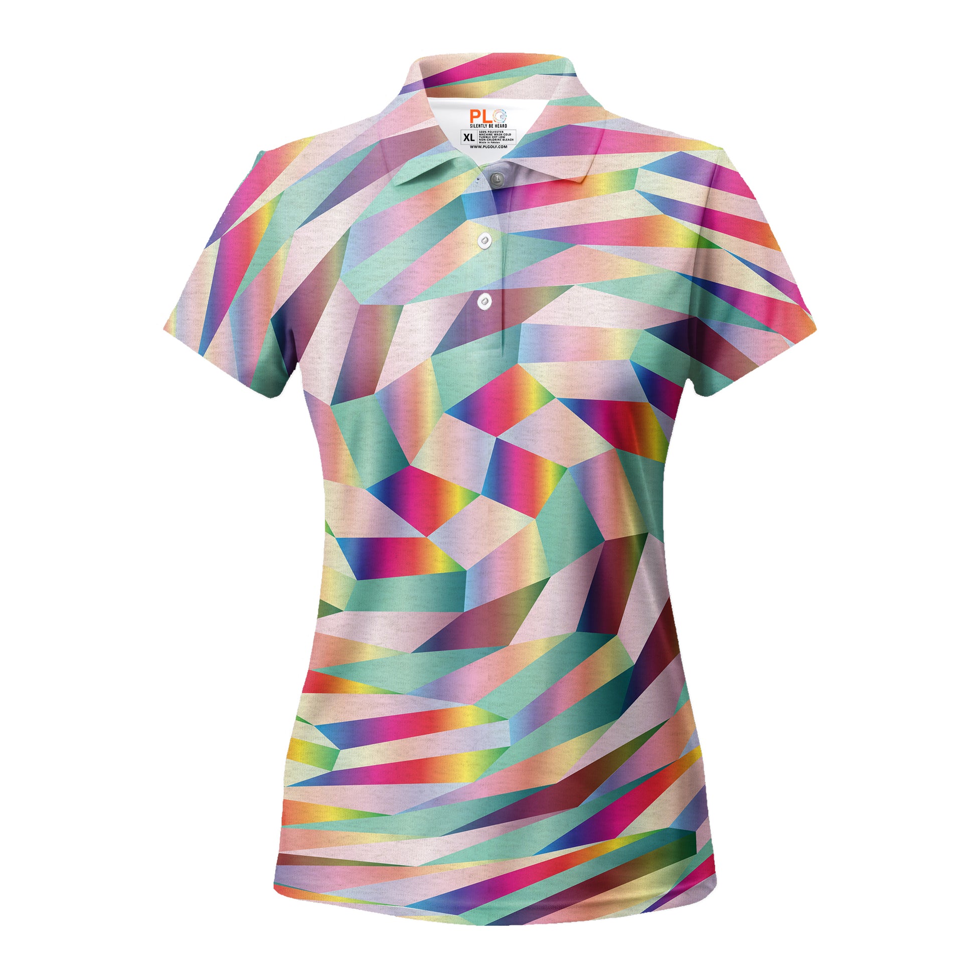Shine bright. Opal Shard features a fractured geometric pattern in soft pastels and bright neon hues. The crystal-like design reflects light and energy, giving her a sharp, multifaceted look that dazzles on the fairway.