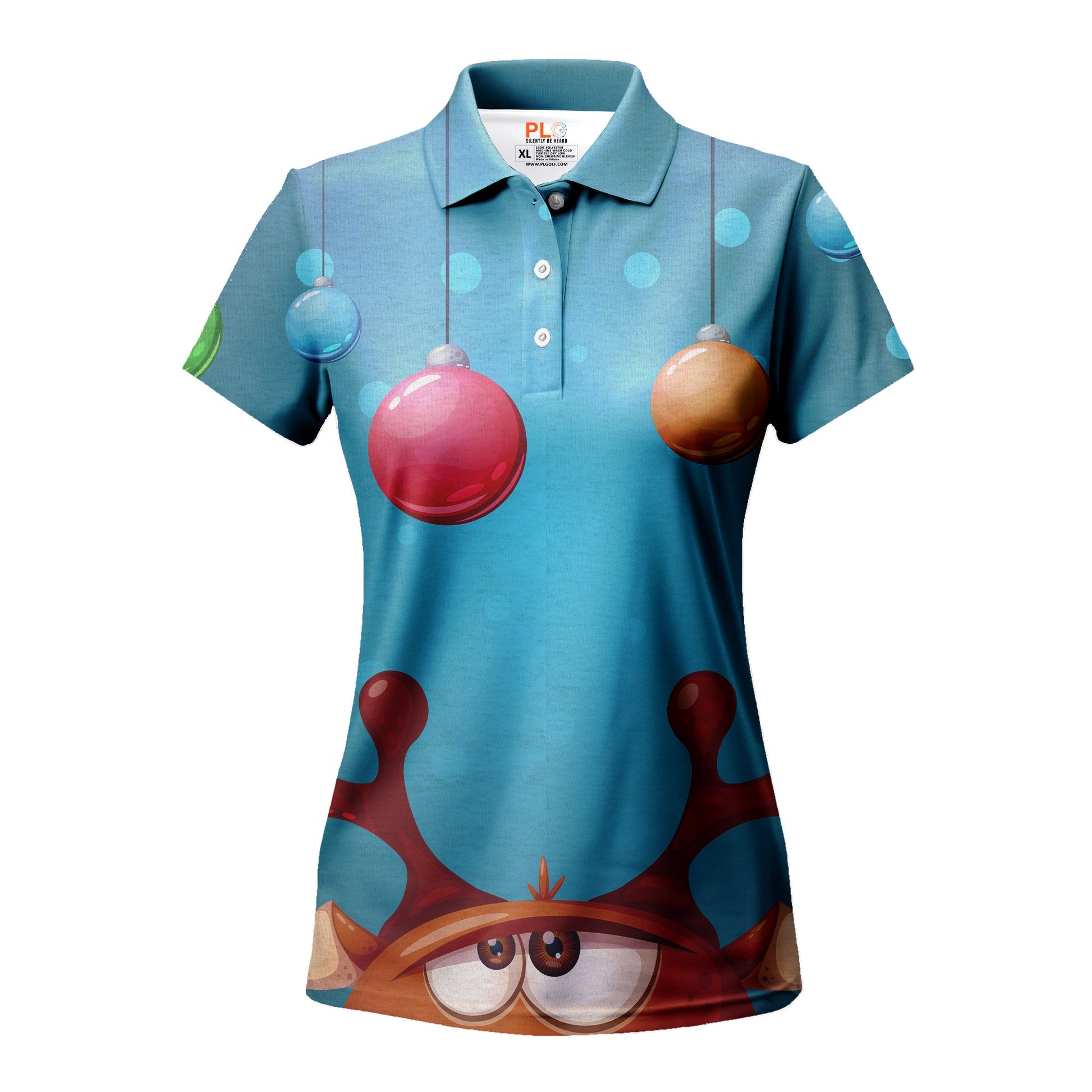 Hit the greens with a touch of whimsy in the Reindeer Games polo from Play Loud Golf's Holiday Collection. Featuring a quirky reindeer peeking up from the hem, this shirt is all about fun and games, ensuring you're the most festive player at the tee box.