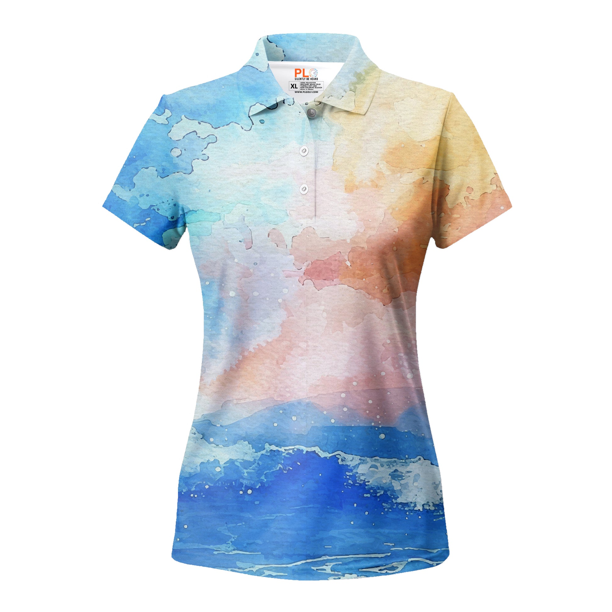 Where the sky meets the course. Skyline Splash features a beautiful watercolor blend of blues, oranges, and soft pinks, reminiscent of a sunset over the ocean. It’s an artistic and relaxing print for a smooth day on the links.